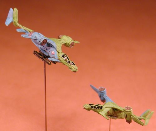 The 111th Close Assault Squadron, 23rd Heavy Bombardment Squadron, 52nd Airborn Transport Command, and the 109th Helicopter Attack Team all made up the original air support contingent for the Irish Dragoons. Although the squadrons were reletaively small in comparison to those of many mecenary units, the squadrons managed to cover the majority of the airial support functions for the Irish Dragoons. Once it was decided to combine the contingent with the 360th AeroSpace Wing, the squadrons were designated as the 888th Close Support Group to help them maintain a their original sence of unit cohesiveness. The 111th Squadron is a low level, close support unit that relies on mostly on board weaponry to attack Battlemechs, armor, and other important ground targets. External ordnance can be carried, but the squadron tatics favor a high speed, high maneouverability attack patterns. The 23rd Squadron medium to high level, heavy bombardment unit. Massive loads of external ordnance are the main armmament to attack their designated targets from a varity of altitudes. The 52nd Airborne Transport Command provid all forms of transport short of DropShip functionality. They can carry all manner of supplies, eguipmen, and personel as well as paratroop deployment. |
