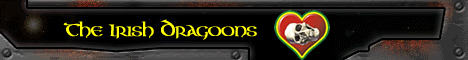 Please feel free to use pictures, stories and refer to excerpts from these pages. If you choose to do so, also please add a link to the Irish Dragoons on your page. Below you will find several styles of banners. Choose the one that best fits with your page style and copy the HTML code to the right of the banner, then paste the code into your site’s HTML. Also remember to "right click" on the associated banner clip art then do a "Save As" in order to add the actual graphic to your web site.