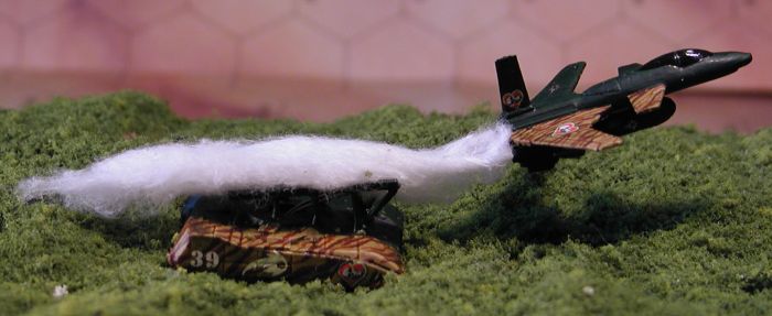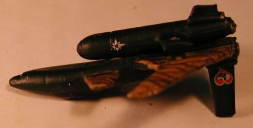 Finally, the ultimate configuration was attempted. Instead of launching a surveillance craft that could fight to a greater of lesser degree, it was decided to launce a full fledged aerospace fighter. This could be used as a point defense fighter, ground assault fighter, or full interceptor mode. It was decided to use a Gorgon class cruise missile as a launch vehicle. With the extra fuel load the Gorgon could be remotely piloted, landed and recovered for easy reuse. Some scientists suggested that the Gorgon could even still be launched with a reduced scale warhead. Thus following the release from the Stingray fighter the Gorgon could then continue on to a secondary target. Needless to say the areospace pilots strenuously objected to riding a bomb off the launch rails. Gorgon launch vehicle: