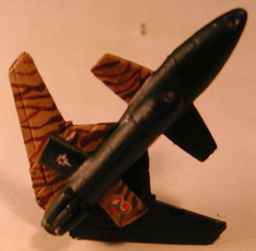 Having proven successful, the Project Fledermaus engineers decided the next step was to enlarge the airframe and make it more combat worthy to serve as an attack craft as well as to provide the needed intel. The rail launcher was abandoned in favor of a hydraulic piston to raise the Manta into launch position. This proved very a successful modification. As with the Bat, an auxiliary launch booster is attached and is jettisoned after launch. Transport mode: