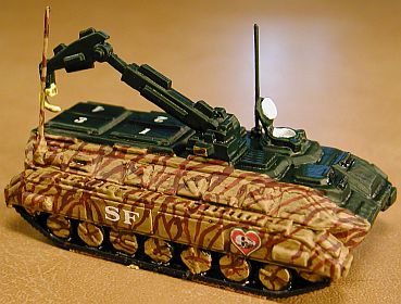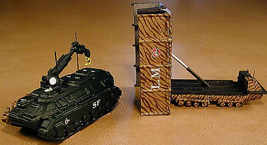 The MTT-750 Flexigon, (FLEXIble waGON) so named for its ability to be reconfigured into multiple layouts to suite mission objectives. In its standard configuration (shown below) it carries four massive storage bins. These can be filled or emptied while in place or the entire bin can be removed. When all four bins are removed (secondary configuration) this provides a huge, open storage bay for larger cargo such as small vehicles or ‘Mechs. Its main duties are to provide replacement parts for ‘Mechs or vehicles, munitions for all mechanized units and recover salvageable materials. Though not strictly designed for ‘Mech recovery, a massive frame can be installed on top of the chassis that can support up to a 75 ton ‘Mech. It can often be found working in concert with the MTW-99 Mobile ‘Mech Recovery Vehicle.