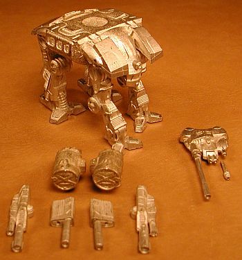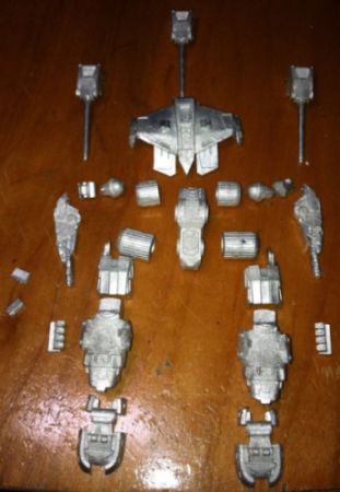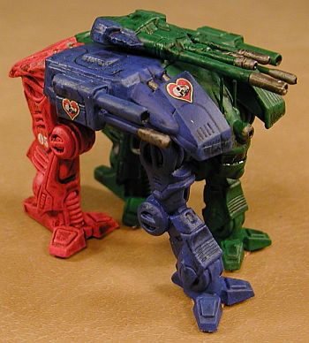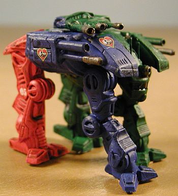 I had just finished the Omega when I got a Simba from the C.A.V. line of minatures and it looked like it might be a good companion for the Omega. I traded another mini and some spare parts for one from another player. When the Simba arrived it was as large as I had hoped but appeared to be woefully under gunned. So I went to my spare parts box and came up with three different possible weapons configurations: |